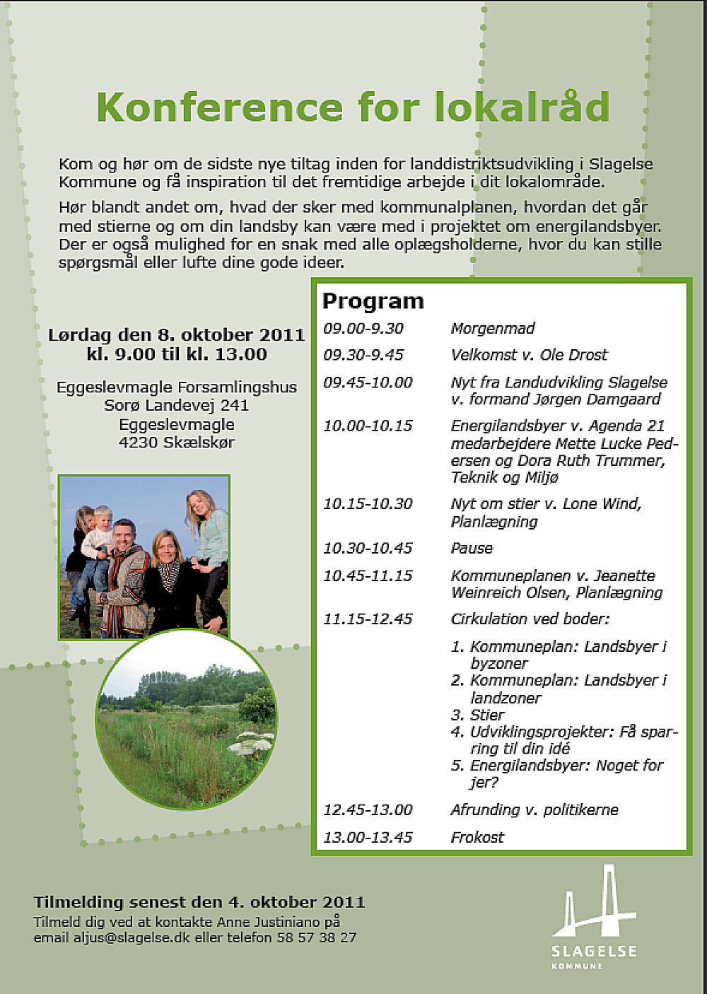Erhvervs-, Innovation og Arbejdsmarkedsudvalget inviterer hermed til konference for lokalrådene og borgerne i landdistrikterne. Konferencen holdes lørdag den 8. oktober i Eggeslevmagle Forsamlingshus.