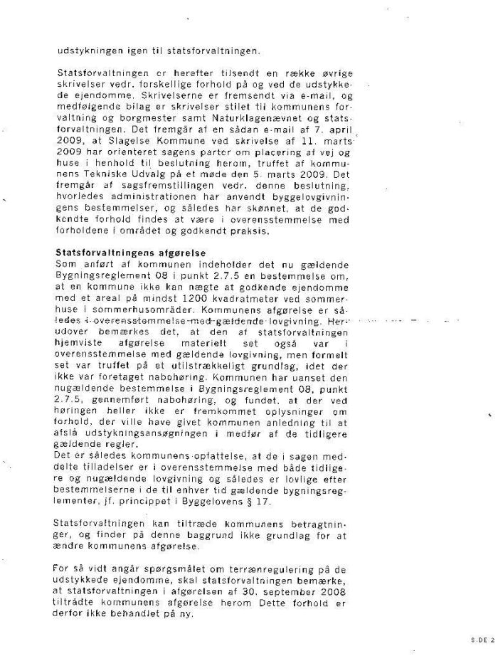 Jeg mener derfor at Statsforvaltningens afgørelse om tilladelse til udstykning i 3 sommerhusgrunde er tvivlsom.