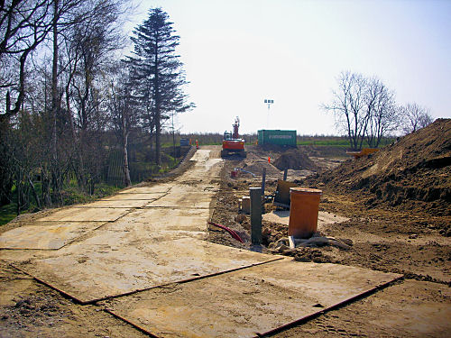 Kommune havde stillet krav om fald skulle være ind på DKRs ejendom. Jeg mener også at SLK stille krav om, at overflade vand ikke måtte ledes til mosen.