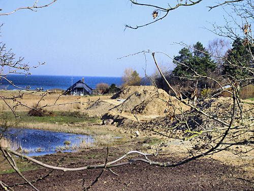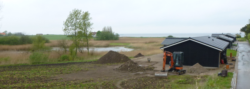 Nu ligger husene der på en kunstig jordvold og naturbeskyttet mose er forvandlet til byggegrunde.
