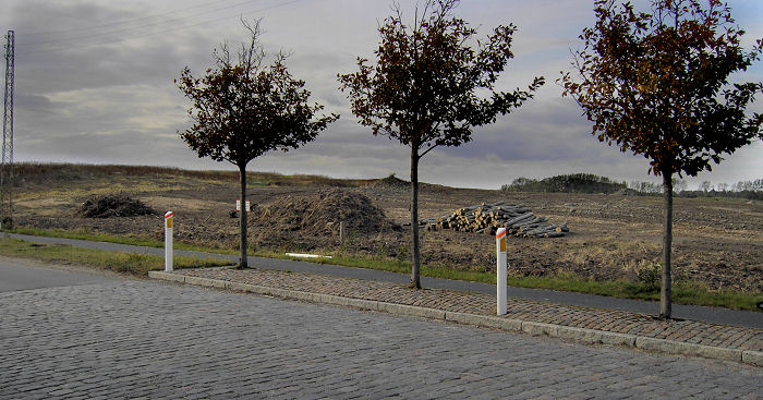Man har fældet bevoksningen ud til vejen, der hvor pælerækken står. Man skulle jo bruge pladsen.