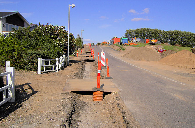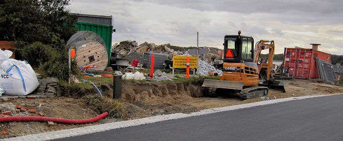 Diverse ledninger i jord skal først omlægges inden opbygning af ny vej.