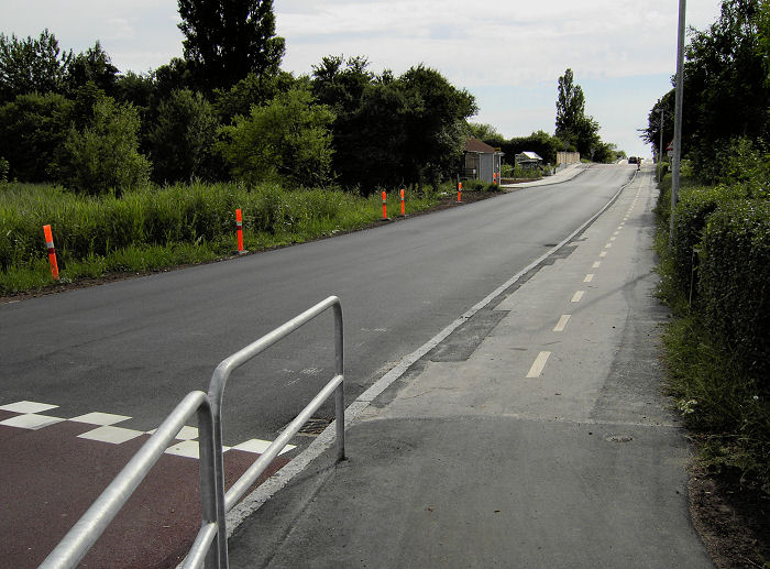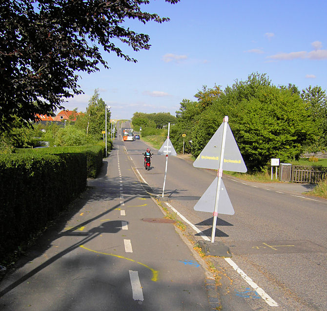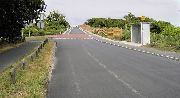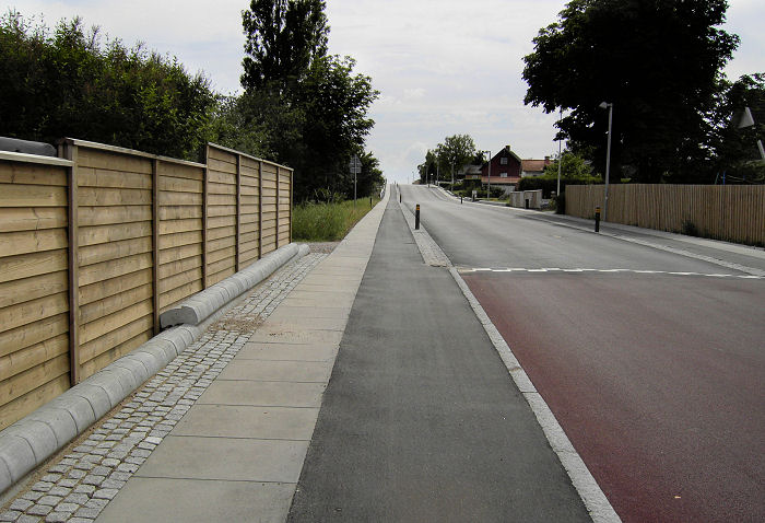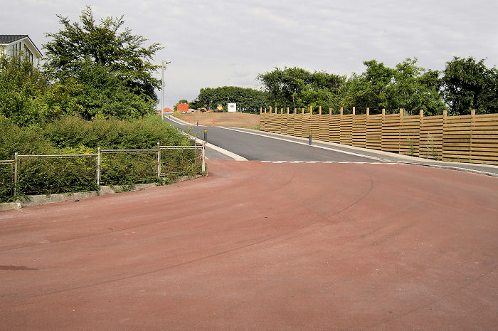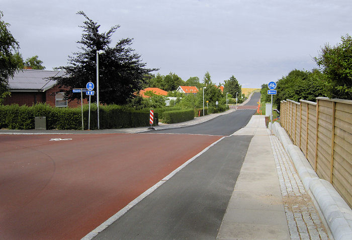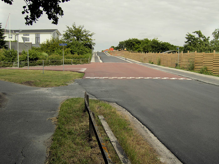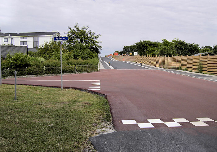 SSå er vi nede ved Rødhøjvej og ser mod øst. Vi slap for et bump.
