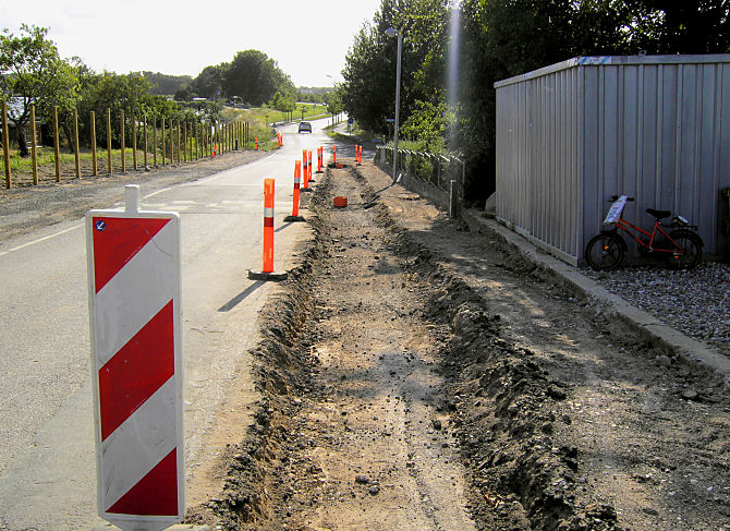 Nu sendte jeg denne hjemmefra og der er en fejl i den. Fortovet får asfaltbelægning ligesom de eks. fortove på Rødhøjvej og på Rylevej. Jeg huskede forkert.