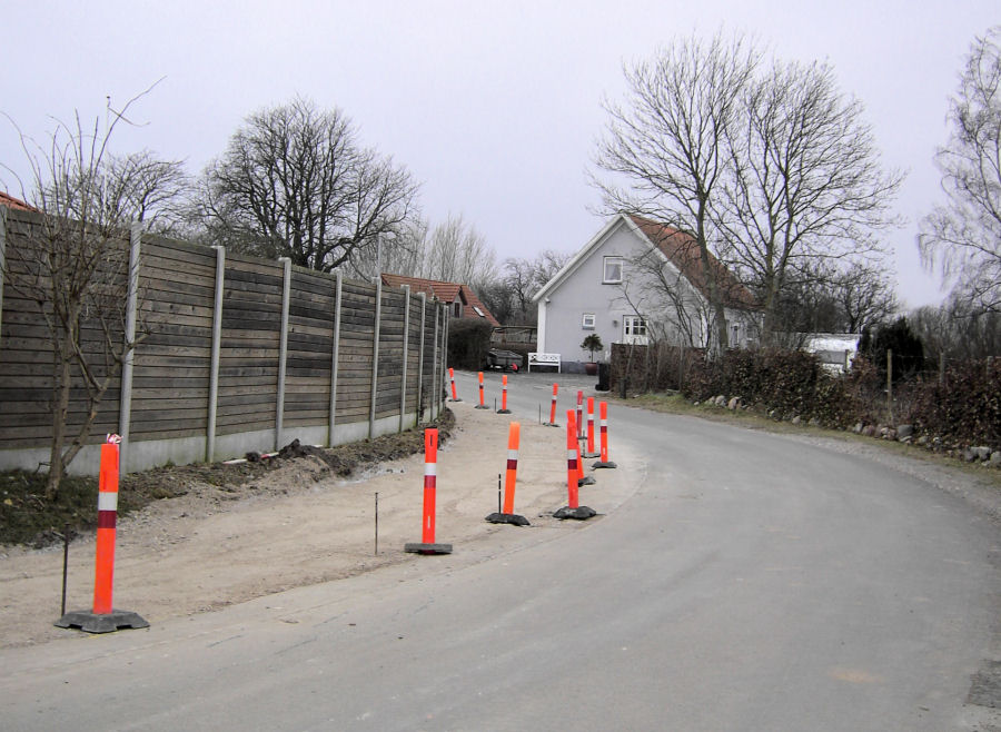 Kig ned mod Rødhøjvej. Tromlerne spærrer, men der er en ganske lille passage.