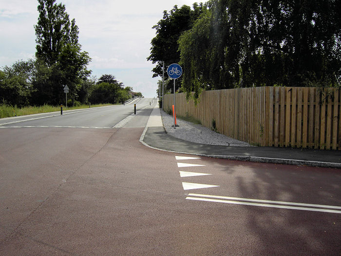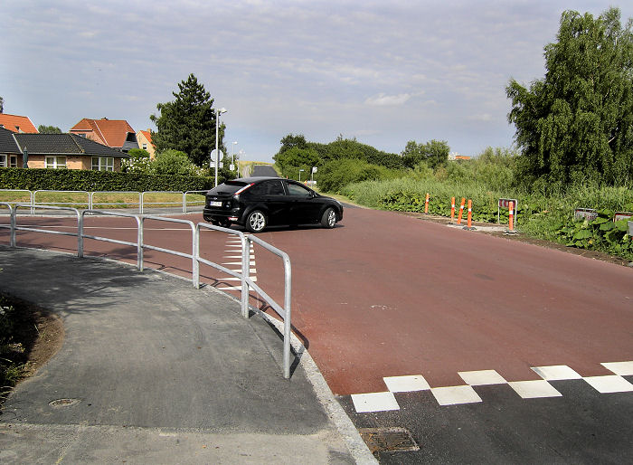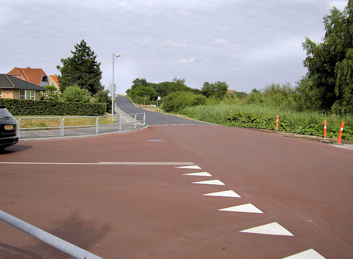 Herligt at cykelstien er ført helt frem og igennem krydset. Der er sløjfet et bump - vi har stadig "rulleren tilbage" - og det bump virker, som det skal.