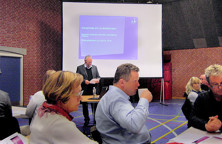 Formålet med dialogmødet er at drøfte den nye skolestruktur, herunder nye skoledistriktsgrænser, landdistriktspolitik og fordeling af tosprogede elever.