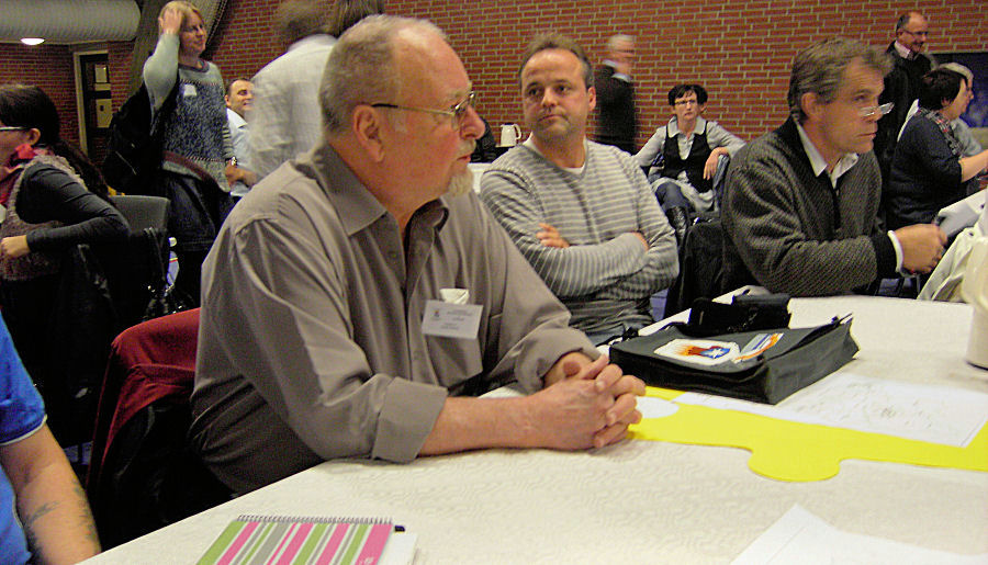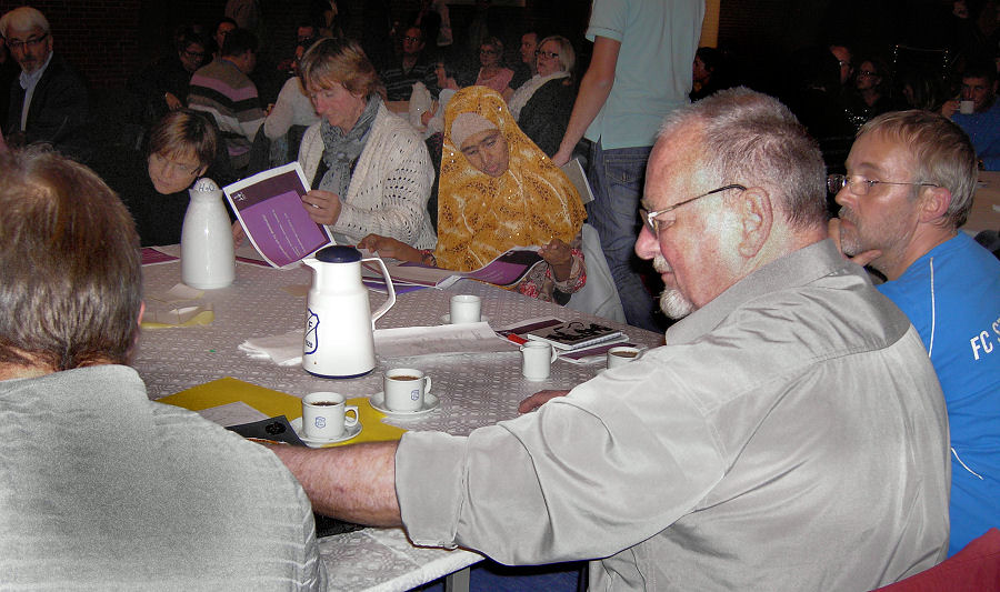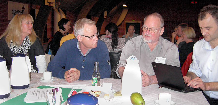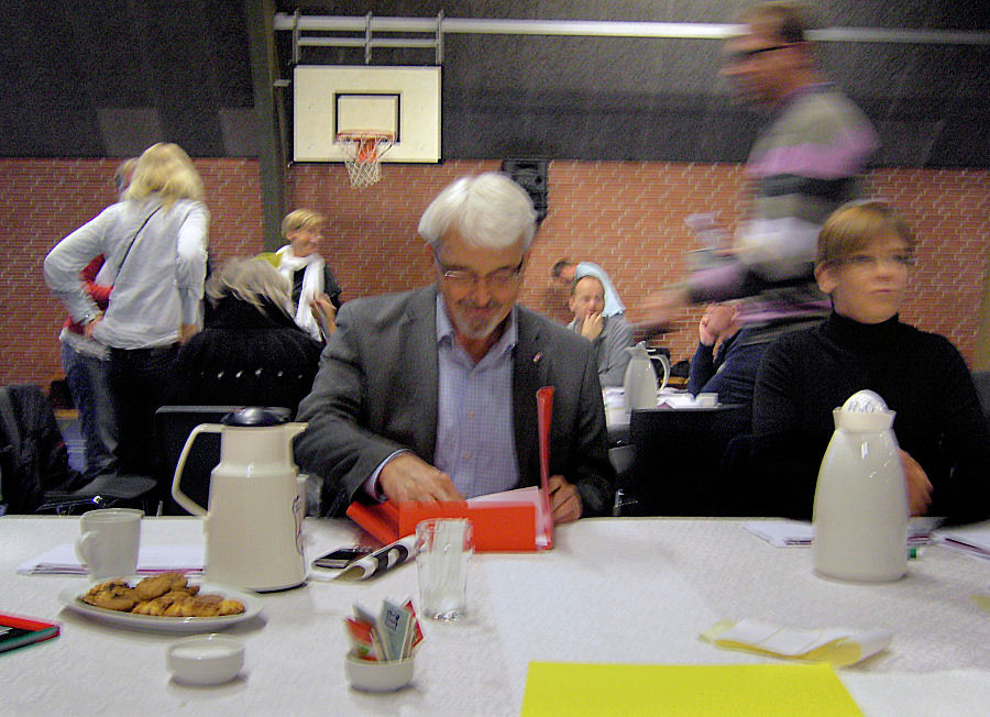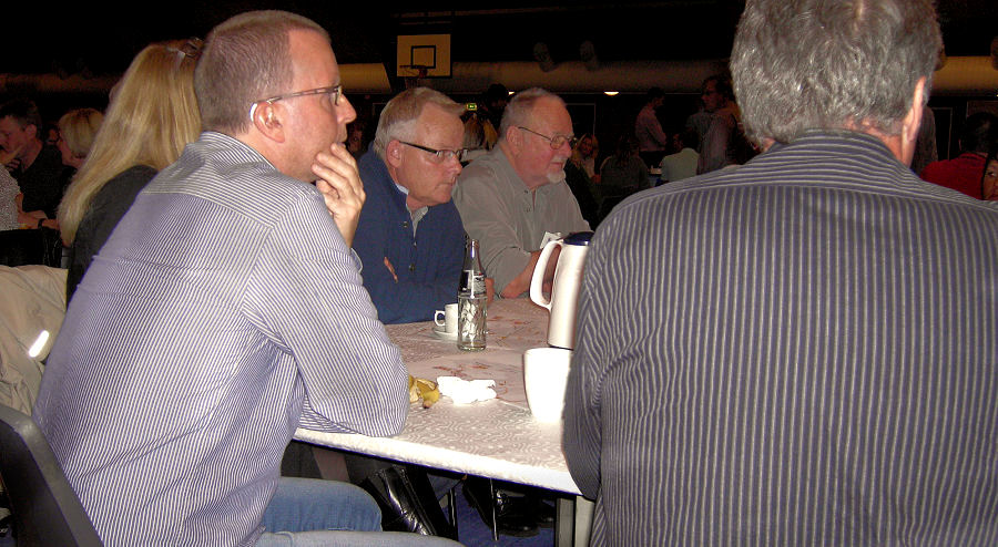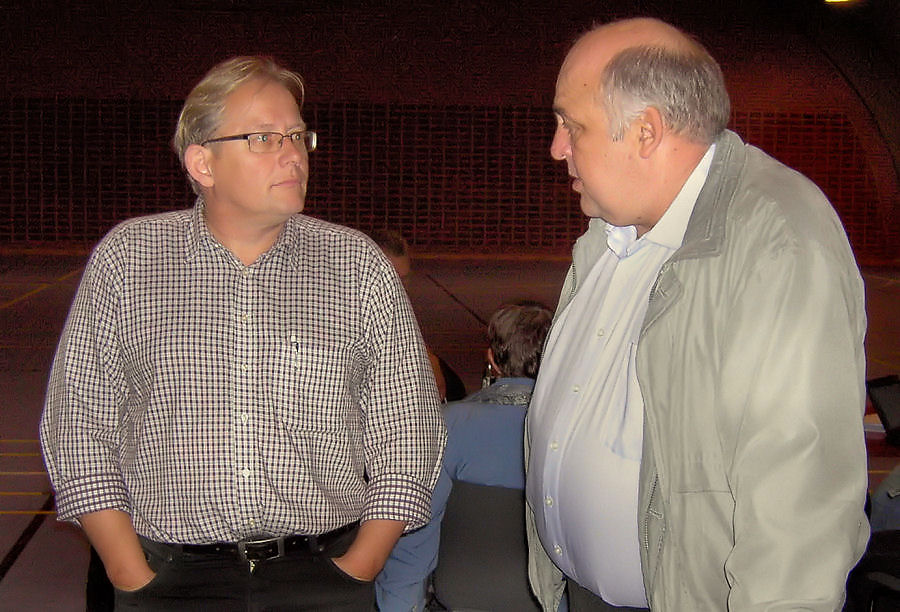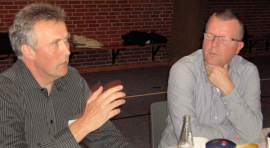 Her ses Stén Knuth (V) - til venstre - sammen med sin partifælle Thomas Modell ved dialogmødet i Tårnborg Hallen den 1. november 2010. Stén havde næppe regnet med, at han skulle komme til at stå for ansvaret som gruppeformand og nyvalgt udvalgsformand så hurtigt.